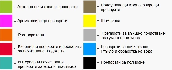 Професионалистите от Koch-Chemie GmbH създадоха система за продуктовата гама, която е перфектно хармонизирана за лесна ориентация на потребителите. Продуктовата система представлява всички продукти произведени от Koch-Chemie GmbH, като съкращенията на наименованията на продуктите в комбинация с цветовите кодове позволяват проста и бърза ориентация при избор на продукт.